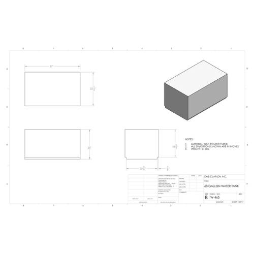 The Custom Roto-Mold 68 Gallon RV Water Tank (Part# W-463) is engineered to meet the requirements of mobile potable water storage in a wide variety of compact living and on-the-go applications. Constructed using rotationally molded polyethylene resin, this tank is built for durability and long-term potable water use.