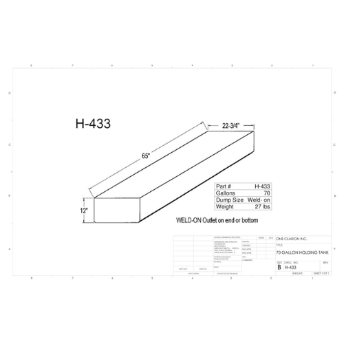 The Custom Roto-Mold 70 Gallon RV Holding Tank (Part# H-433 [OR]) is engineered to meet the rigorous demands of mobile holding storage applications in RVs, campers, trailers, and mobile systems. Built with seamless, rotationally molded polyethylene, this tank offers long-term durability and exceptional resistance to cracks, chips, and ruptures.