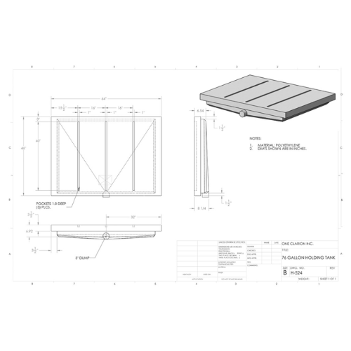 The Custom Roto-Mold 76 Gallon RV Holding Tank (Part# H-524) is engineered to support large-capacity mobile liquid storage needs for RVs, trailers, campers, and portable sanitation systems.