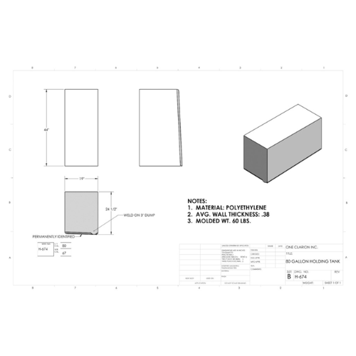 80 Gallon Custom Roto-Mold RV Holding Tank (MPN: H-674)