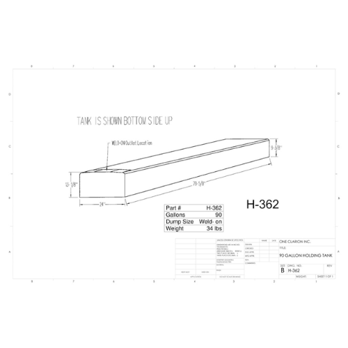 The Custom Roto-Mold 90 Gallon RV Holding Tank (Part# H-362) is engineered for high-capacity liquid storage in mobile applications including RVs, food trucks, trailers, boats, and off-grid cabins.