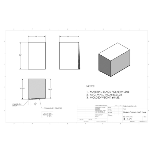 The Custom Roto-Mold 92 Gallon RV Holding Tank (Part# H-671) is engineered to meet the demands of mobile holding storage applications, including RVs, trailers, campers, food trucks, and off-grid systems. With its tall, compact footprint, this tank is ideal for installations where vertical space is available but horizontal space is limited.