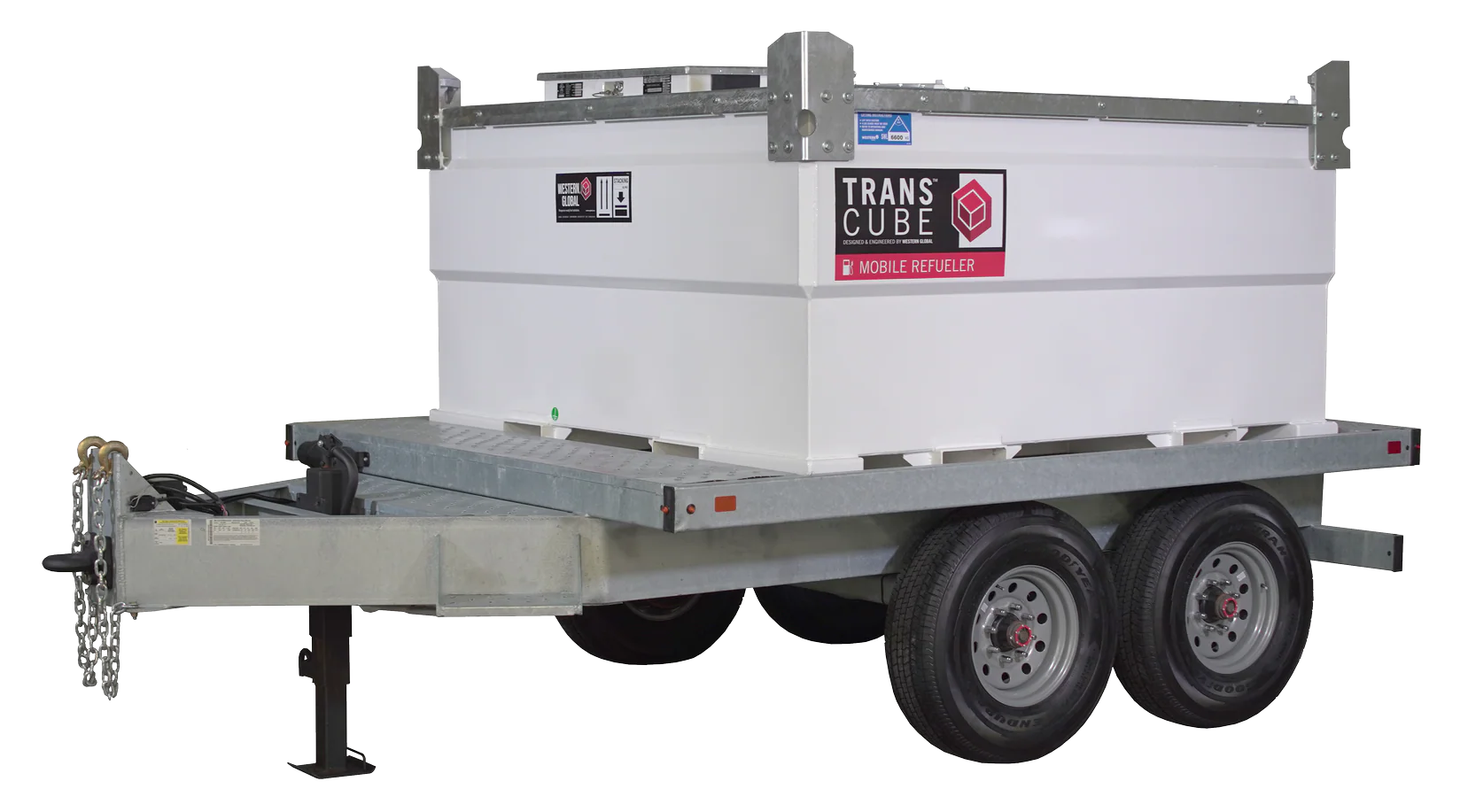 TransCubes can be mounted to a DOT approved trailer for a complete mobile fuel solution. The TransCube Mobile Refueler is designed for travel on construction sites and between projects. This fuel trailer is the most reliable, environmentally secure solution for refueling machinery and equipment on the move.