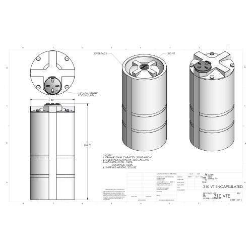 The 310-Gallon Vertical Enclosed Tank HD ships via LTL freight from Idaho within 1–2 business days. It is palletized and securely packaged to prevent shipping damage. Backed by a 3-year limited manufacturer’s warranty, this tank provides long-lasting performance in a wide range of operating conditions.
