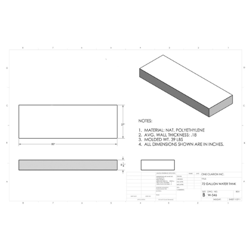The Custom Roto-Mold 72 Gallon RV Water Tank (Part# W-546) is engineered for durable and space-efficient potable water storage in mobile environments. Built from rotationally molded polyethylene, this tank offers exceptional strength and longevity for a variety of off-grid and on-the-go water storage needs.