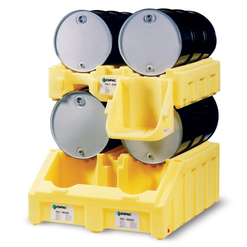 The ENPAC 2 Drum Poly-Stacker is designed to expand the capacity of your Poly-Rack drum dispensing system while maintaining safe and efficient operation. This stacker serves as the top section of the Poly-Rack system, providing additional storage space for two more drums without compromising spill containment.