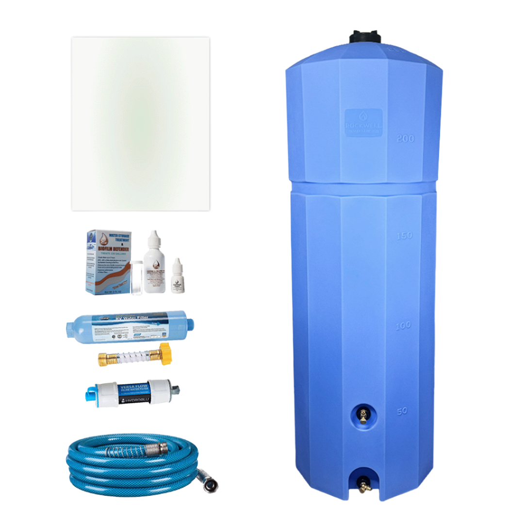 Everything you need to start storing clean, safe water right out of the box. Includes tank, filters, hose, treatment, and rotation schedule.